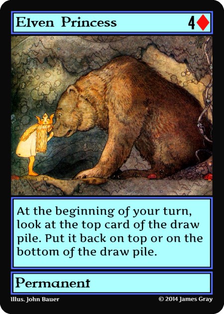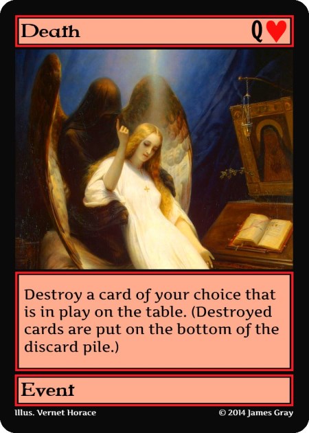 I could use the traditional French playing card suits instead of the more fancy and potentially more interesting suits. The cards could look like this using the regular playing card suits: