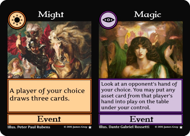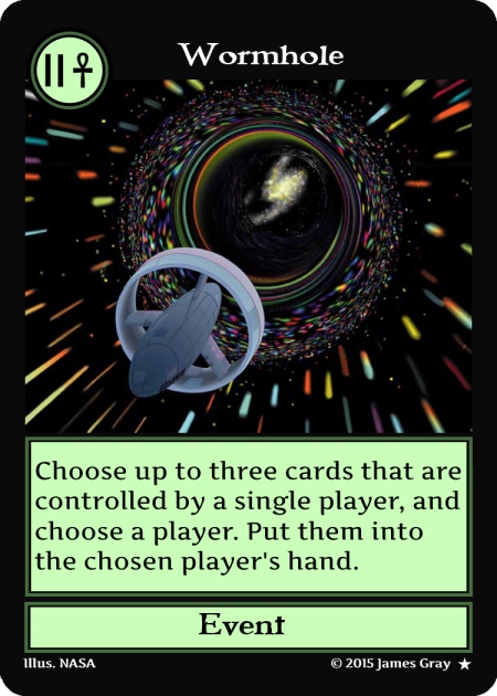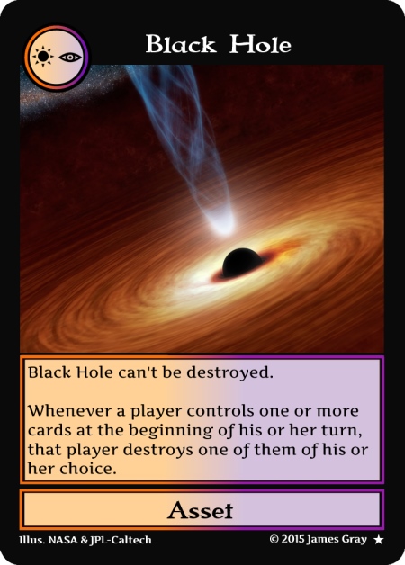 Instead of two-colored cards another idea is to have split cards–cards that can be played for an effect of two different cards. Split cards count as two colored cards when discarded. I don’t have a lot of ideas for space-themed split cards, so they are unlikely to be used for Eternity.