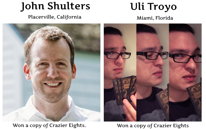 I will give one copy of the original Crazier Eights games as prizes to those currently subscribed to the newsletter this December. The winner will be determined on January 1st, 2017.